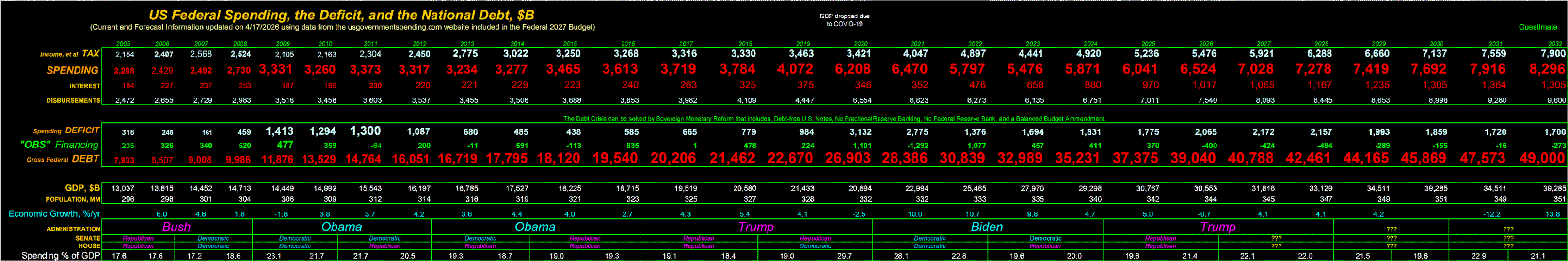agenda. It's not clear how the National Debt will ever be
